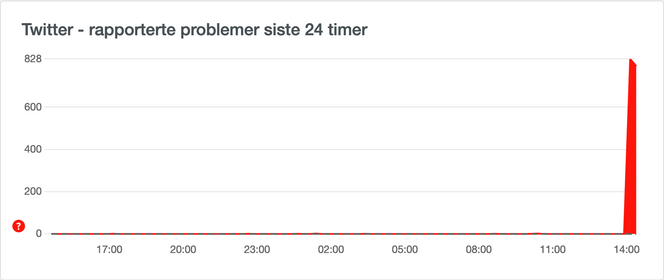 Downdetector viser at feilen oppsto rundt klokken 13.50, etter det har rapporter om problemer skutt i været. Alle Twitters tjenester er berørt av nedetiden, hverken nettsiden, mobilappen eller TweetDeck fungerer.